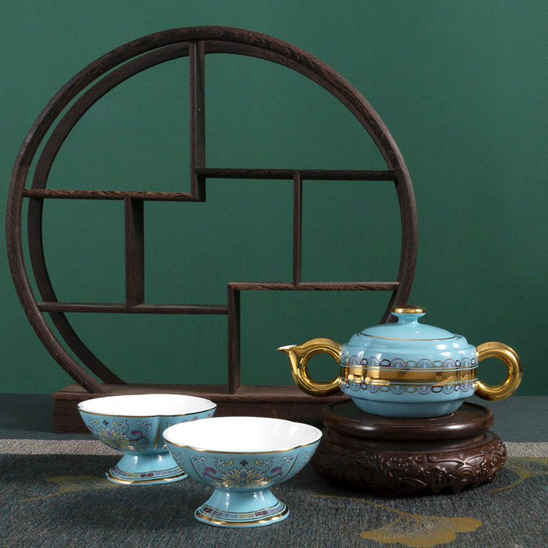 • 景泰藍海棠套壺